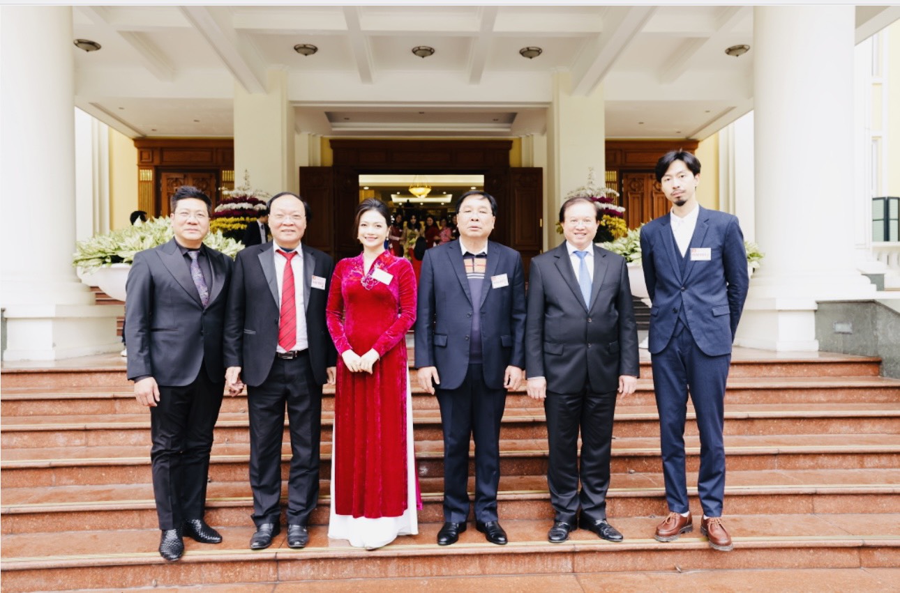 Chủ tịch nước Võ Văn Thưởng chụp ảnh lưu niệm cùng Tổng Giám đốc VCPMC - NSƯT. Nhạc sĩ Đinh Trung Cẩn.