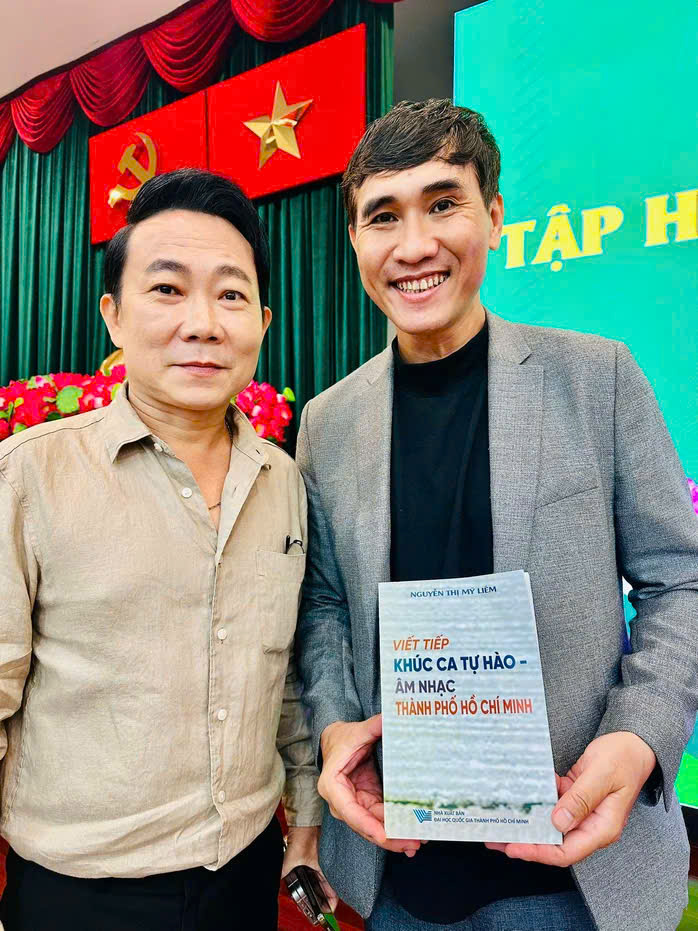 Ca sĩ Anh Bằng và PGS TS Nguyễn Thị Mỹ Liêm với sách "Viết tiếp khúc ca tự hào âm nhạc TP HCM"