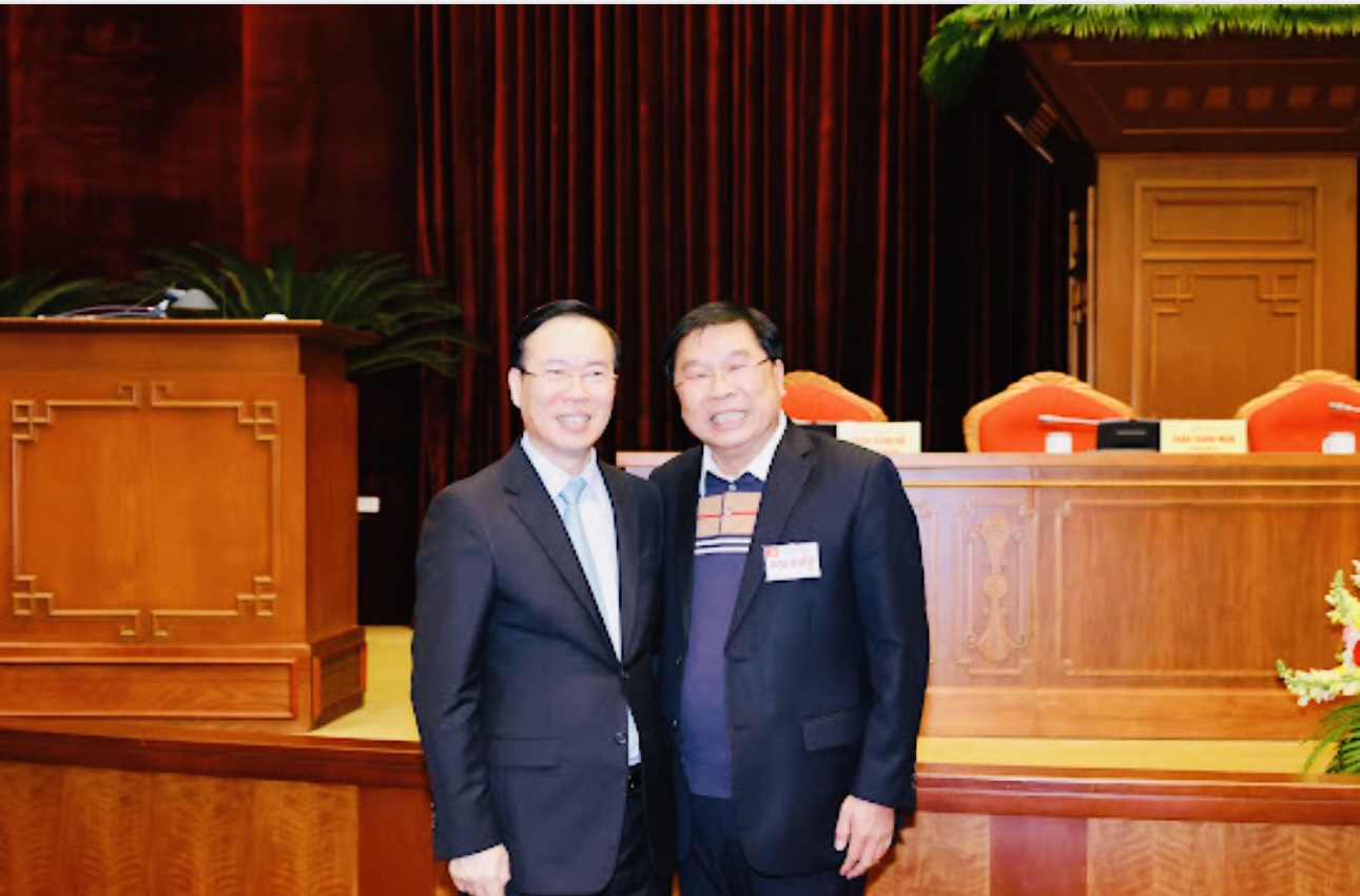 Chủ tịch nước Võ Văn Thưởng chụp ảnh lưu niệm cùng Tổng Giám đốc VCPMC - NSƯT. Nhạc sĩ Đinh Trung Cẩn.
