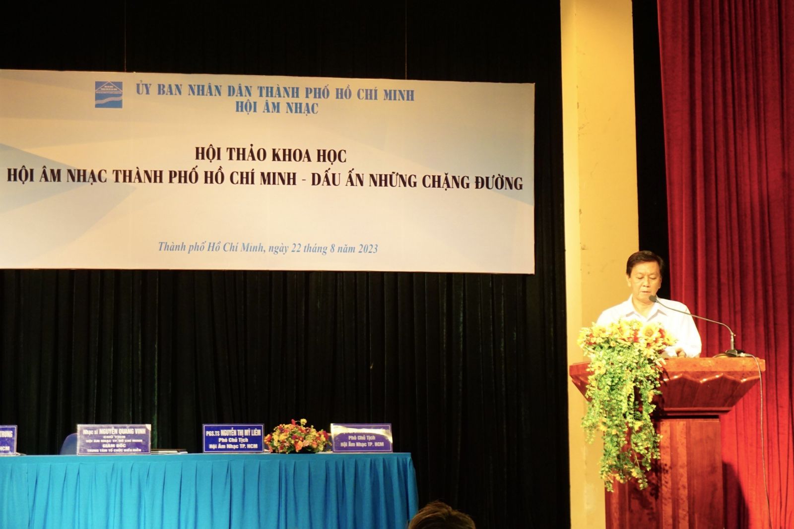 Trong phát biểu tại Hội thảo, ông Nguyễn Thọ Truyền - Phó Trưởng Ban Tuyên giáo Thành ủy Thành phố Hồ Chí Minh khẳng định: “Hội Âm nhạc Thành phố Hồ Chí Minh là tổ chức chính trị, xã hội, nghề nghiệp. Trải qua chặng đường 42 năm xây dựng và trưởng thành, các thế hệ lãnh đạo, hội viên của Hội Âm nhạc đã đạt được nhiều thành tích rực rỡ, đóng góp xứng đáng vào sự phát triển chung của nền Văn hóa Nghệ thuật Thành phố Hồ Chí Minh. Trong các cuộc kháng chiến chống ngoại xâm các bài hát của các nhạc sĩ lão thành đã kêu gọi thúc giục các tầng lớp nhân dân lên đường đấu tranh để giành độc lập tự do cho dân tộc… đến ngày đất nước hoàn toàn giải phóng các bài hát đã phát huy lòng tự hào yêu nước, xây dựng và phát triển đất nước,.. âm nhạc có một chức năng đặt biệt là chạm nhanh, mang yếu tố tích cực đến trái tim của người nghe, vì vậy nó phát huy vai trò của nó trong việc vận động, tuyên truyền các đường lối chủ trương, chính sách và pháp luật của Đảng và nhà nước đến với nhân dân một cách tích cực, nhanh chóng đễ tiếp thu. Cho đến nay Hội Âm nhạc Thành phố luôn khẳng định vai trò, vị trí rất quan trọng trong việc phát triển nền văn hoá, văn nghệ Thành phố lành mạnh, phong phú và đa dạng… được thể hiện cụ thể qua những chương trình hành động mà nhiều năm qua Hội Âm nhạc Thành phố đã thực hiện. Hội thảo khoa học này nhằm tổng kết hoạt động của Hội, ghi nhận những thành tựu đã đạt được.Tôi cho rằng đây là hoạt động rất thiết thực và có ý nghĩa".