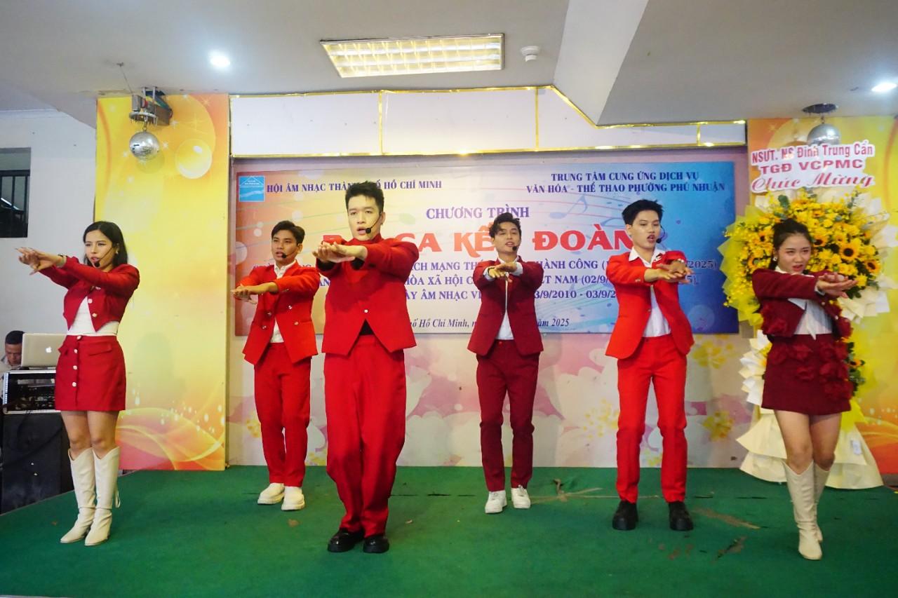 Sáng ngày 29/8/2025 tại Trung tâm Cung Ứng Dịch vụ Văn hóa – Thể thao Phường Phú Nhuận (70-72 Nguyễn Văn Trỗi, Phường Phú Nhuận, TP. Hồ Chí Minh) đã diễn ra chương trình “Bài ca kết đoàn” lần thứ 16 do Hội Âm nhạc TP. Hồ Chí Minh phối hợp cùng Trung Tâm Cung ứng Dịch vụ Văn Hóa - Thể thao Phường Phú Nhuận tổ chức và 06 Chi hội sáng tác thuộc Hội Âm nhạc TP. Hồ Chí Minh thực hiện.