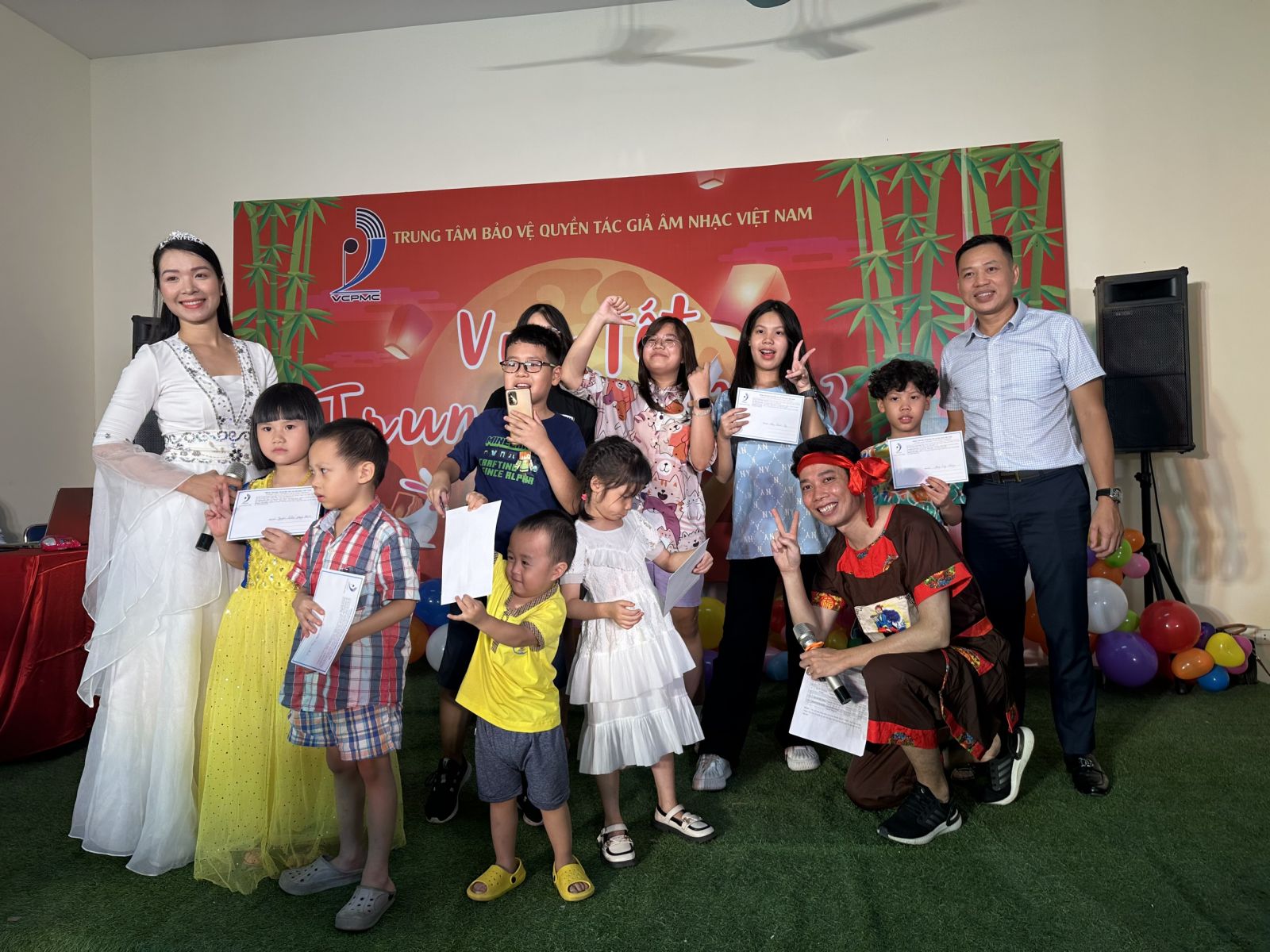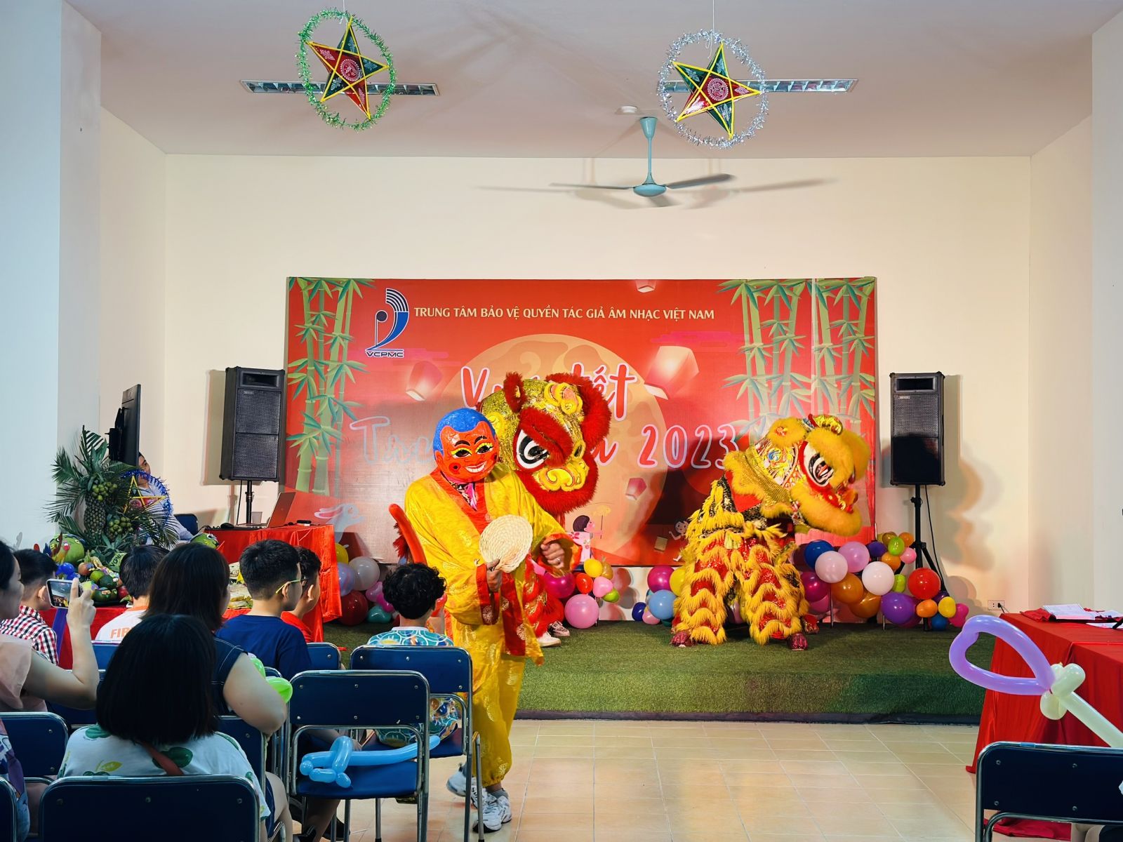 Vui Tết Trung Thu năm nay có khoảng 40 cháu thiếu nhi với các lứa tuổi khác nhau là con cán bộ nhân viên của Trung tâm Bảo vệ quyền tác giả âm nhạc Việt Nam. Đây là dịp để con em cán bộ nhân viên Trung tâm gặp gỡ, giao lưu, thắt chặt thêm tình thân giữa cán bộ, nhân viên trong một hoạt động nhiều ý nghĩa dành cho thiếu nhi.